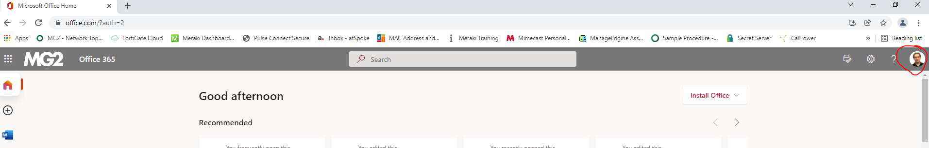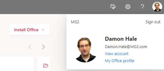1. Go to http://office.com and make sure you are signed in with your MG2 email. You should see your
