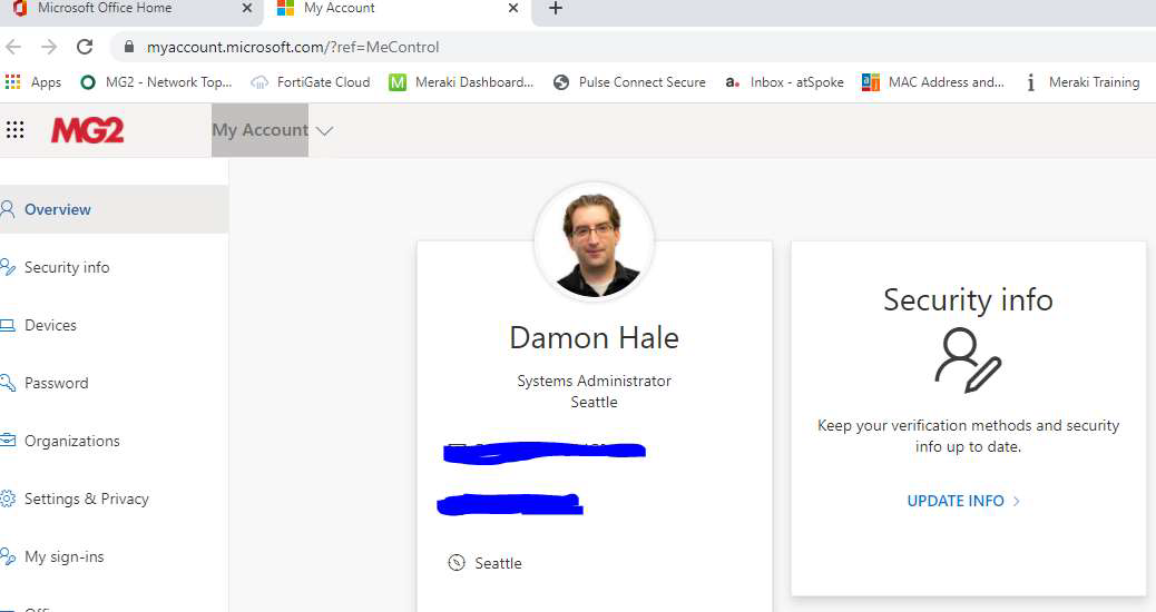 3. Go to the “Security info” box and select “UPDATE INFO”