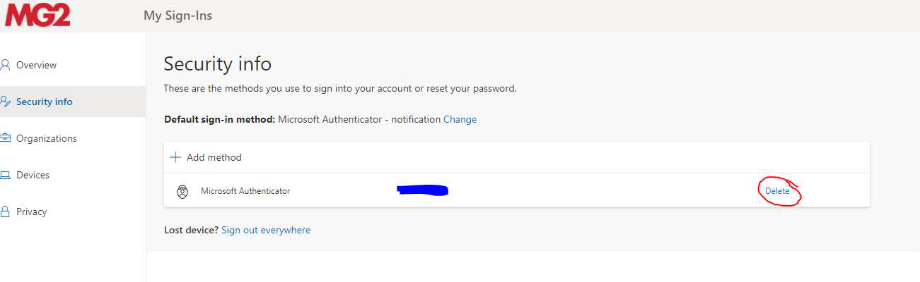 Note: Make sure that the default sign-in method on the Security Info page is Microsoft Authenticator