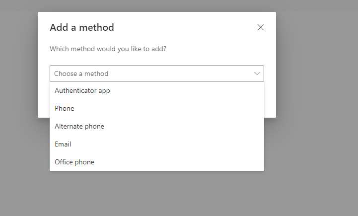 5. Click “Add method” and choose “Authenticator app”